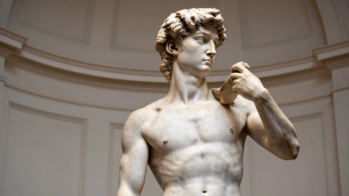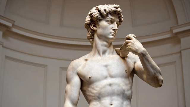 피렌체의 여름에도 대리석은 차갑다. 가까이 다가서면 돌이 살아 숨을 참기라도 하는 듯, 그 기묘한 생명체의 냉기가 뿜어져 나오는 것을 느낄 수 있다. 17피트 높이의 카라라산 백색 대리석. 스물여섯의 젊은이가 조각한 이 작품은, 이미 다른 두 명의 조각가가 불가능하다며 포기했던 돌덩이로 만들어졌다. 너무 좁고, 너무 얕으며, 결함투성이였다. 그 돌은 수십 년간 대성당 작업실에 방치되어 있었다. 다른 이들의 포기를 기념하는 기념비처럼. 그리고 그 젊은 조각가는 그 돌을 보며, 그 안에 무언가 기다리고 있음을 보았다.