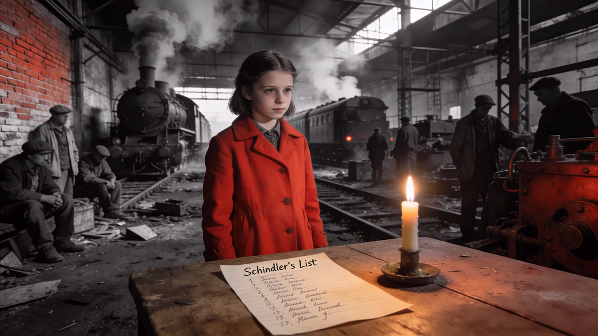 금니를 녹여 만든 반지가 있다. 떨리는 손에서 떨리는 손으로 건네진다. 전쟁은 끝났다. 이제 공장은 기계도, 거짓된 목적도, 위장막도 모두 걷히고 텅 비어 있다. 오스카 쉰들러는 자신이 구해낸 사람들, 이곳을 살아서 걸어 나갈 1,100명의 영혼들 사이에 서 있다. 그리고 그는 무너져 내리고 있다.
