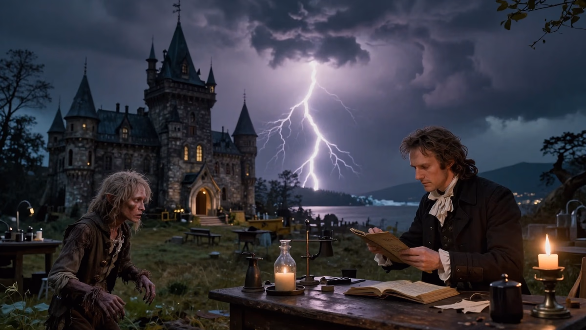 방은 차고 어두웠다. 빅터 프랑켄슈타인이 더는 견디지 못하고 흔들리는 손으로 들고 있는 램프의 위태로운 불빛만이 그곳을 비추고 있었다. 지난 2년간 그는 단 하나의 갈망 속에서 살아왔다. 그것은 피조물 자체가 아니라, 불가능의 문턱을 넘는다는 행위 바로 그 자체였다. 그리고 이제, 그 문턱을 넘어섰다. 그것이 숨을 쉰다. 흐리멍덩한 노란 눈이 뜨인다. 초점 없이 축축하고 무언가를 찾는, 세상의 모든 새로운 눈이 그러하듯, 익숙한 무언가를, 자신이 어떤 세상에 떨어졌는지 알려줄 얼굴을 찾고 있었다.